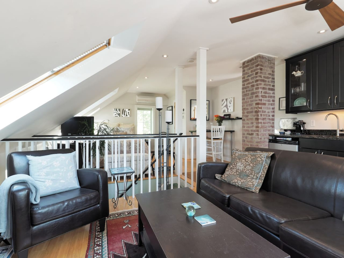Your party will have two lovely private spaces, connected by a door, on the second floor of the Chesapeake Paradise House. 1) THE FLAT PLUS ["The Ascended Space"]: Light, modern, open studio loft, creek-view skylights. A private apartment, completely separate from our house downstairs. The Flat has its own separate entrance on the waterside of the house. Luxurious marble bath with deep freestanding tub and large European shower. Leather couch, writing desk, well-appointed granite wet bar/kitchen with microwave and refrigerator/ freezer, bar-height table, electric "wood stove." The Flat has a queen bed, wireless internet with varied workspaces, flat-screen TV/DVD player, HDML cable for Netflix, iPod dock. The Flat is a completely separate space (private enough to often be used by honeymooners!) with its own entrance. 2) THE SOLARIUM (with optional bathroom): The Solarium is unique in that it has windows on all three sides for both sunrise/moonrise and sunset views. This very peaceful sun-drenched space that is attached to The Flat by a glass sound-dampening door. It has a wonderful, white leather couch and double bed, its own small balcony. You access the Solarium from The Flat by taking walking up two steps & going through the sound-dampening glass door. Many guests take a break for a fun, restorative, or romantic retreat; others come to Light Landing to complete writing, art, or other projects. We've had countless happy guests come for their private anniversary, birthday, and even honeymoon, along with their wedding party, all of whom felt they had plenty of privacy and so many have become “regulars!” Even though you can read hundreds of thrilled reviews below, we have captured one that conveys the spirit of the Light Landing experience: “My husband and I had the greatest experience at Shawn’s place. We were greeted by Shawn with a handful of daffodils that she freshly picked out of her garden and placed in a sweet vase. Those little, thoughtful details are all over this Flat! Some of our favorite things about this stay were the super deep bathtub, all of the natural light facing the beautiful bay (there are so many windows!!), the cleanliness, our privacy, the incredibly comfortable bed, and pretty much everything! The descriptions don’t do this place justice. Our expectations were exceeded in every way, and we are already planning our next visit. After exploring D.C. or Annapolis on a couple of the days, we found ourselves excited to get to escape back to this serene gem." Wireless internet (or Ethernet cable for direct connection) with varied work spaces, SMART TV with 40” flat screen and free Netflix or HDMI cable, and for music, a wireless Bluetooth speaker or DVD player with access to owners extensive DVD collection. White ash wood floors and whole house fire sprinkler system throughout. Totally relax and play in Light Landing's shady lawn and bright open spaces; bbq, and fire pit outdoors; tree swings and double hammock; English “tree gardens,” kayaks, crabbing, and our relaxing pier afford a peaceful and inspirational setting any time of the year for your stay in the Washington Metro area. Includes use of pier, screened porch, fire pit, gas BBQ, kayaks, swings, entire country-like acreage. We provide helpful amenities for all seasons like throw blankets for movie nights, extra towels, big floaty things for playing off the pier in summer, and other small touches that can make all the difference in creating your happy, memorable experience. We consider including children, but would want to have a conversation to make sure it’s a good fit for you. An option for bigger parties: Take a look at the whole house listing by searching "Chesapeake Paradise House-Stunning 7br4ba Waterfront" on VRBO. This includes a description of the bedrooms/bathrooms configurations and the various combinations of rooms that you can rent. NOTE: There is another romantic suite on your floor as well as other accommodations in the house, so while you have your own completely separate space, you may occasionally hear the owner or other guests. However, this has been the case for 14 years and we've always received stellar reviews. I’ve asked the guests in the Sunrise Suite to not use your small balcony and to leave the glass door and windows next to it locked to ensure both your and their privacy. FYI… at this time I have not decided whether to get blinds for the really big windows because the view is spectacular, and they are high enough so that no one can see into the living areas from down below and no one goes into the field. You will open your eyes to beautiful reflections on the water at night and gorgeous light in the morning. Even though there is a bed in the Solarium, most guests are choosing to sleep in the Flat, which is darker and more private. If you have a second couple or are using both rooms for sleeping, just know that the Solarium will have early morning light. So far, our guests have been thrilled with us, and we've been thrilled with them! What a cool thing. Hope to see you soon!